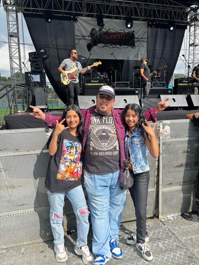 El público del RocKristobal Fest 2025 fue diverso, reuniendo tanto a fanáticos de toda la vida como a nuevas generaciones. Edwin Carmona, un papá que asistió con sus hijas, compartió su visión sobre la importancia de exponerlas a distintas manifestaciones culturales.