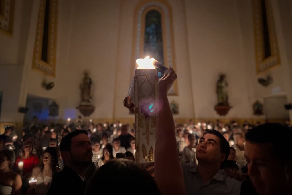La ceremonia del encendido del cirio comienza con el Lucernario, donde el fuego bendecido por el sacerdote da inicio a una procesión solemne que recuerda que, así como la luz se esparce en la noche, Cristo lleva la luz de la vida a los corazones de sus fieles. Como comenta el entrevistado, “es el momento donde conmemoramos la resurrección de nuestro Señor”. El fuego, además de encender el cirio, simboliza el Espíritu Santo que anima la vida de la Iglesia.