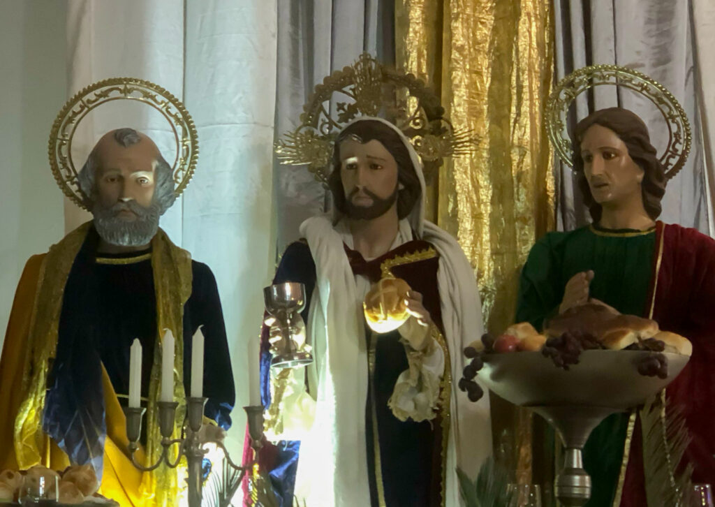 Otro de los símbolos más representativos, especialmente en relación con la eucaristía celebrada el Jueves Santo durante la Misa de la Cena del Señor, es el vino y las uvas. El vino se transforma en la sangre de Cristo, según la fe católica, y hace memoria del sacrificio ofrecido en la cruz. Las uvas, como fruto de la vid, recuerdan que las personas están llamadas a permanecer unidas a Cristo. “Esta copa es la nueva Alianza en mi sangre”, dice Jesús en el Evangelio de Lucas (22:20), estableciendo una alianza eterna sellada con su sacrificio. Cada vez que se celebra la Eucaristía, se renueva este misterio de amor.