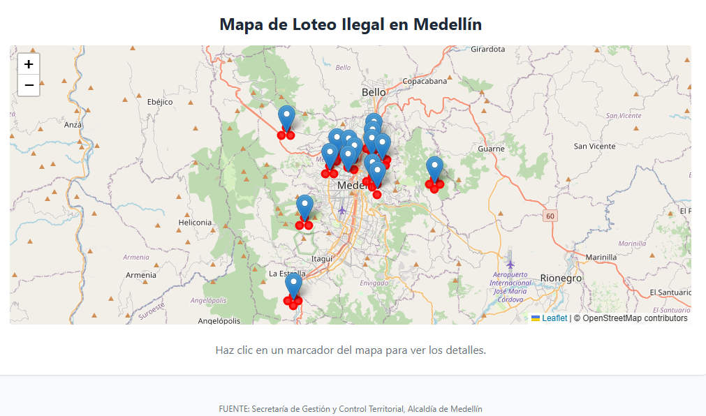 Haciendo clic en la imagen del mapa, conozca en detalle los puntos críticos de loteo ilegal en corregimientos y comunas de Medellín: