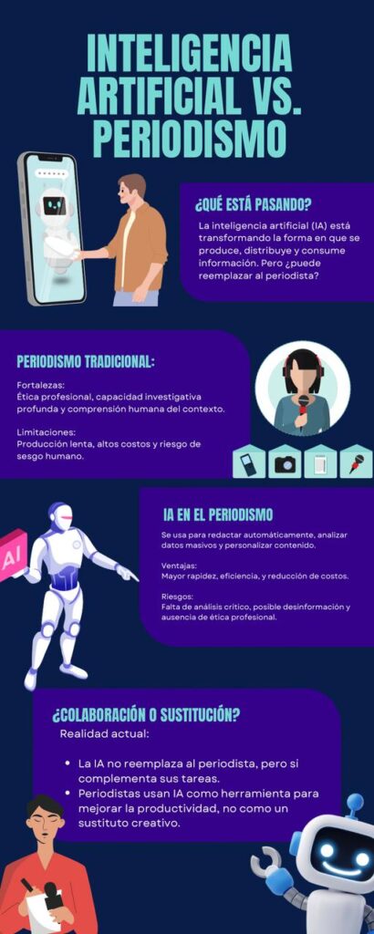 En este nuevo panorama mediático, la integración de la inteligencia artificial en el periodismo no debe ser vista solo como una apuesta tecnológica, sino como un llamado a reforzar los principios que sustentan la profesión. Innovar con responsabilidad implica que la eficiencia no reemplace la verdad, y que el desarrollo digital no opaque la voz crítica y humana del periodismo. La clave está en lograr una convivencia armónica entre el avance tecnológico y los valores fundamentales del oficio: la ética, la veracidad y el compromiso con una ciudadanía bien informada. Solo así, la inteligencia artificial podrá ser una aliada real en la construcción de un periodismo más ágil, pero también más consciente y transparente.