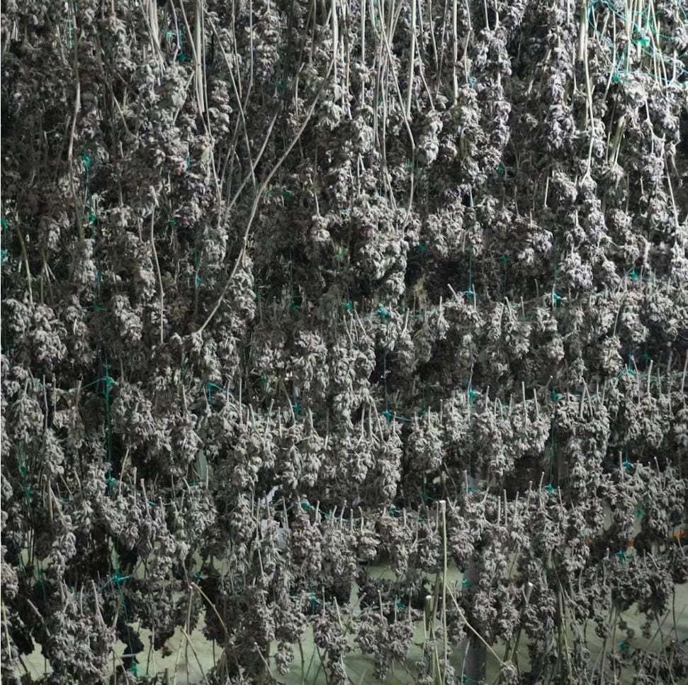 Cannabis: Las ramas son características del proceso de secado y curado de cannabis, una etapa posterior a la cosecha en la que se reduce gradualmente la humedad de los cogollos para conservar su aroma, potencia y calidad.